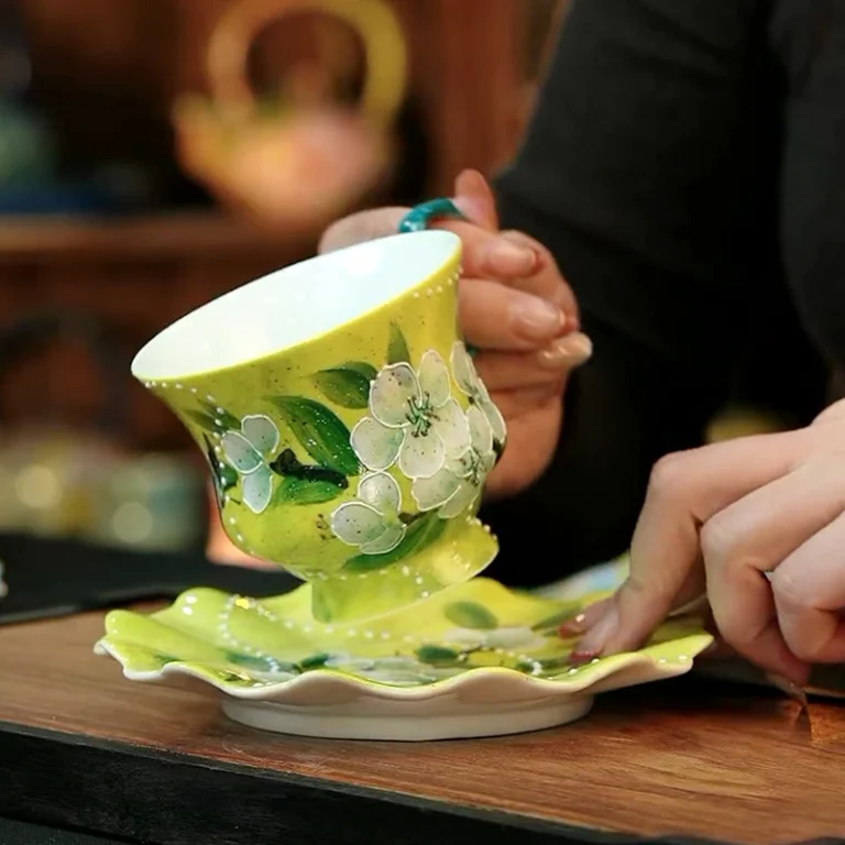 Impressionist Jasmine Hand-Painted High-Fire Underglaze Cup & Saucer Set