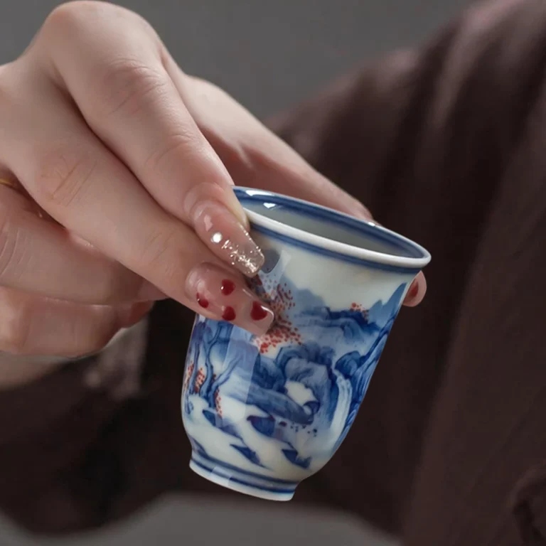 Hand-Painted Blue & White “Stream Maple Serenity” Aroma Cup