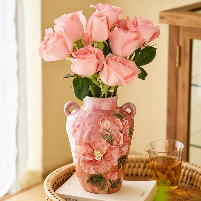 Hand-Painted Persimmon Ceramic Vase
