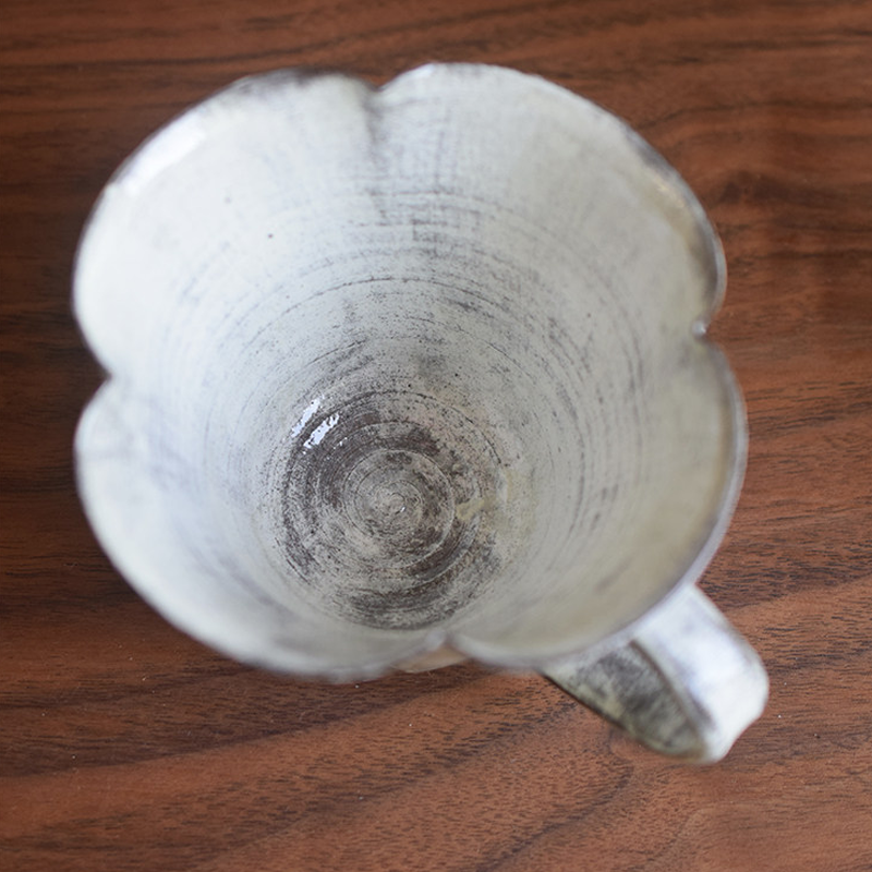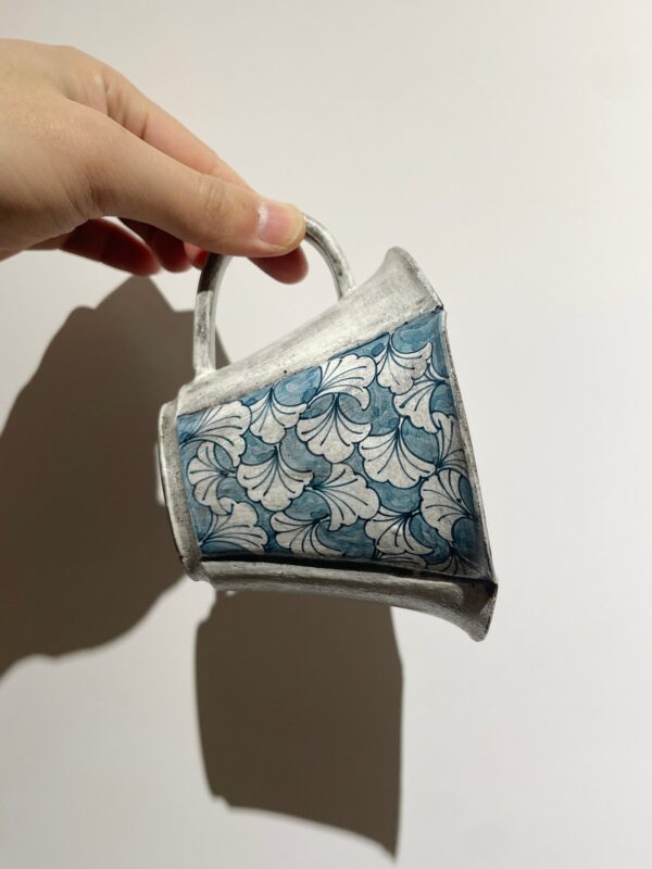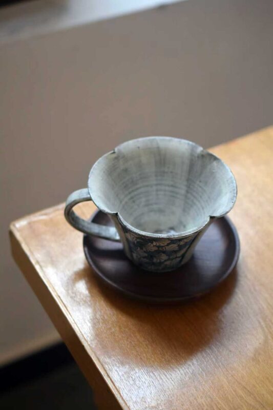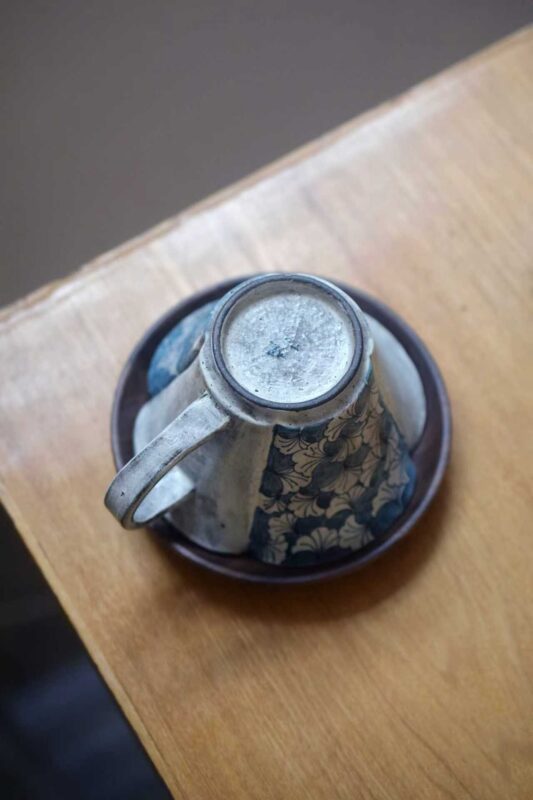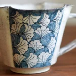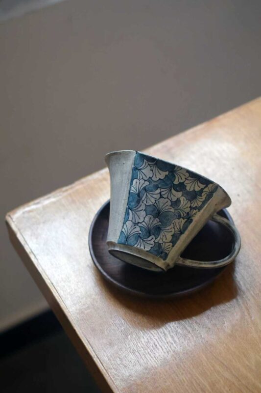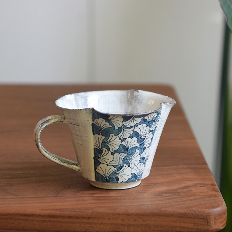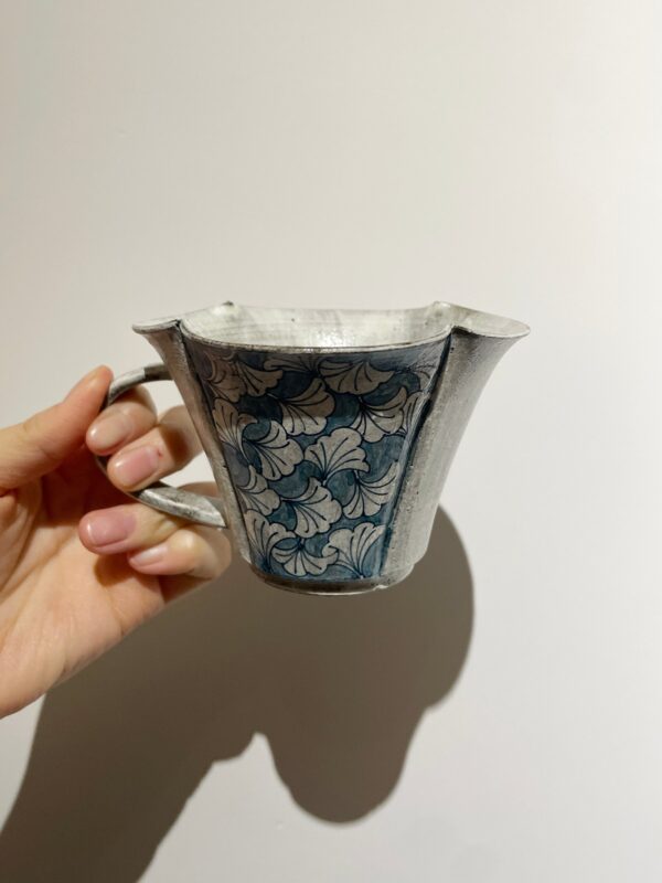 Blue-Gray Ginkgo Scalloped Hand-Painted Coffee Cup