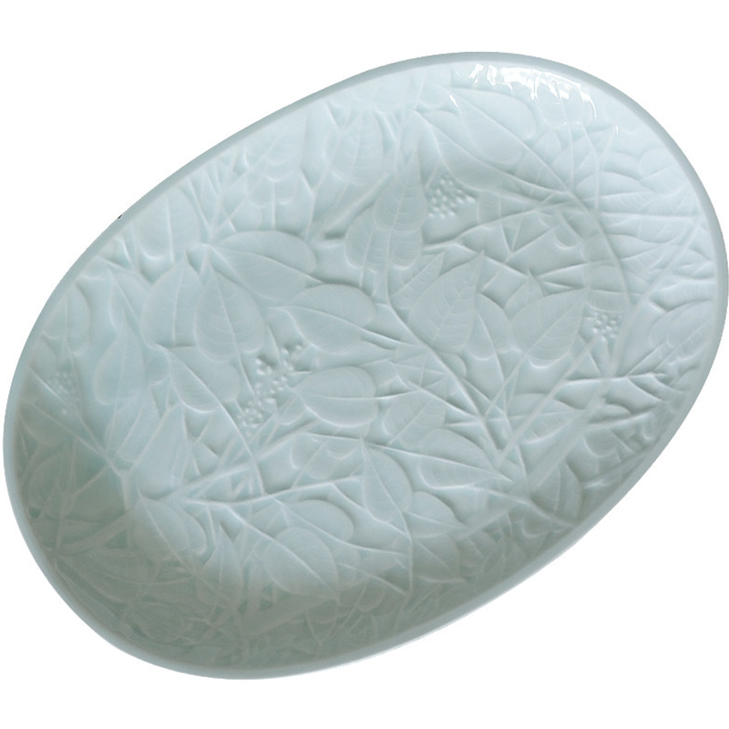 Celadon Relief Foliage Oval Plate