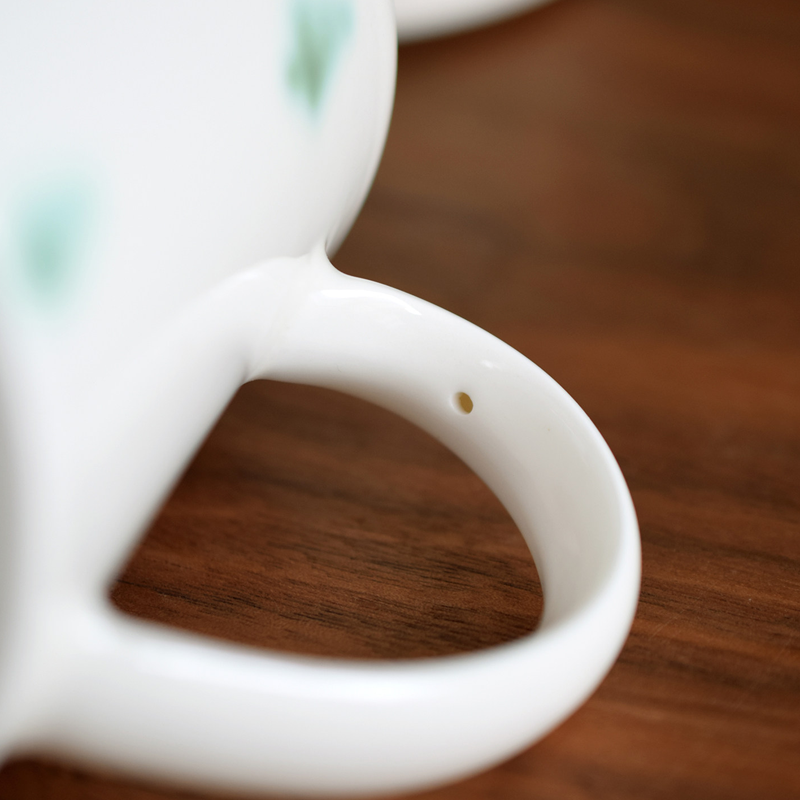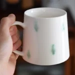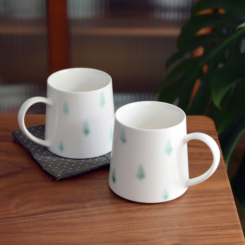 High-white porcelain base with hand-painted underglaze light green tree impressions. 370ml large capacity ideal for American coffee and milk. Fresh and translucent—handcrafted ware to hold daily relaxation and natural vibes.