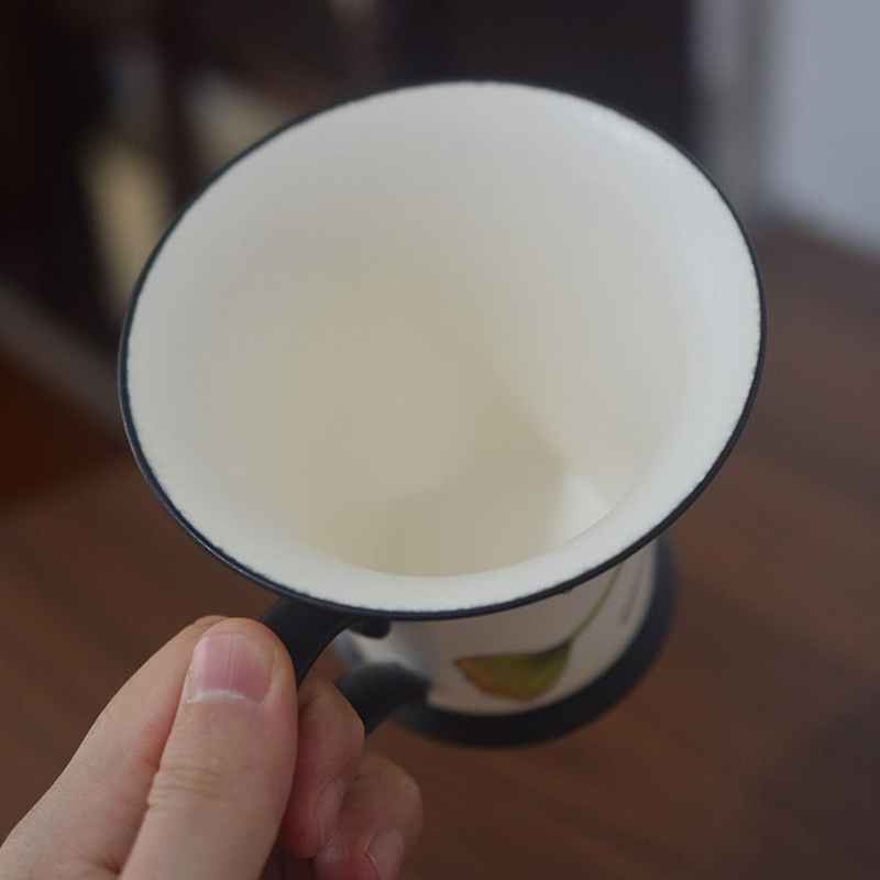 Vintage off-white glaze with hand-painted ginkgo leaves, black torn-edge rim. 250ml capacity ideal for lattes and pour-over—original handcrafted ware full of autumn healing vibes.
