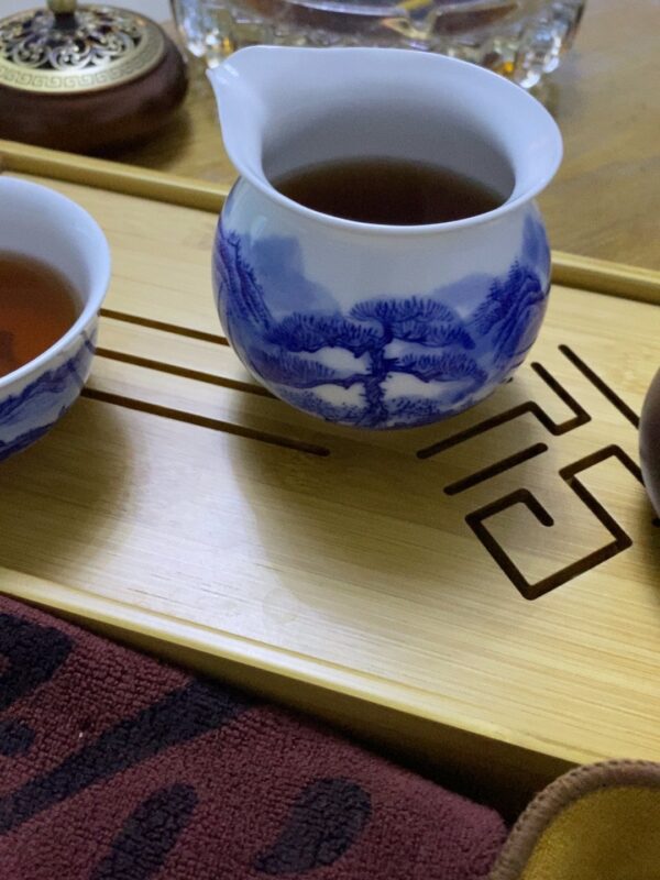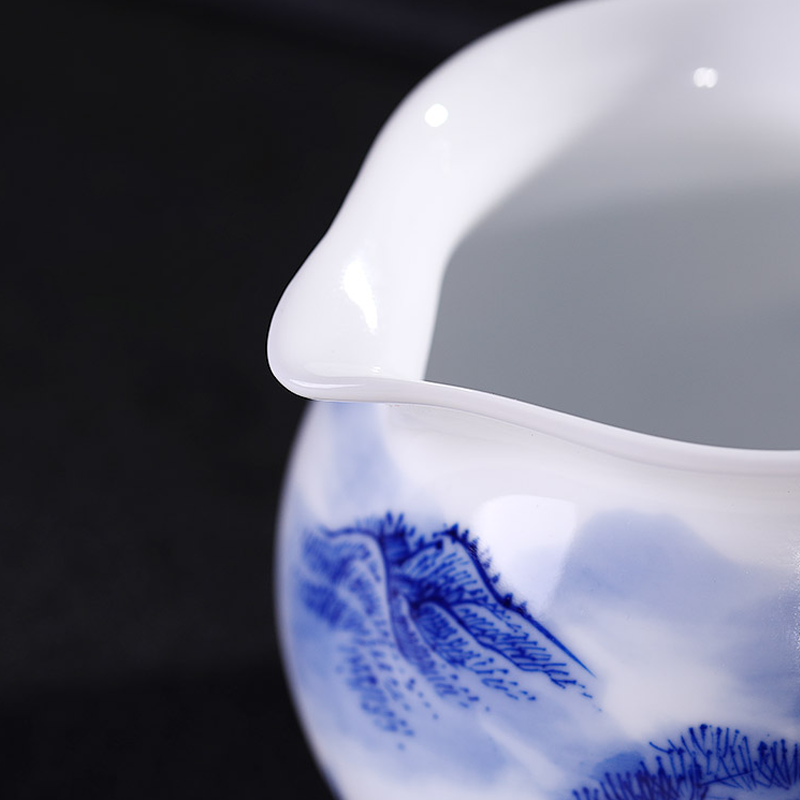 Each piece endures the trial of high-heat firing to ensure the blue pigment truly integrates with the “bone” of the porcelain. This is more than a tool; it is the “peacemaker” of the tea table, harmonizing the varying strengths of the brew, much like the balanced coexistence found in the landscapes it depicts.