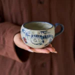 By artis Elan: When I made this mug, I couldn’t stop thinking about my chonky orange tabby—always napping in the bamboo shadows by the window, or batting at the little fruits in the flower pot, his tail twitching with “I’m lazy but I’m happy” energy.Cats are the ultimate symbol of “cozy comfort and companionship”—like the Cheshire Cat in Alice in Wonderland, always there to soften the chaos with a silly grin.The blue-and-white hand-painting is where the magic happens: I use traditional underglaze technique to draw every stripe, blush, and squinty eye of the cat, plus bamboo leaves, little berries, and flower sprigs. Because it’s hand-pinched + hand-painted, no two mugs are exactly alike! Some cats have chubbier cheeks, some bamboo leaves are wonky—that’s the romance of handmade!