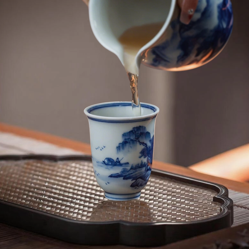 Hand-Painted Blue & White “Stream Maple Serenity” Aroma Cup