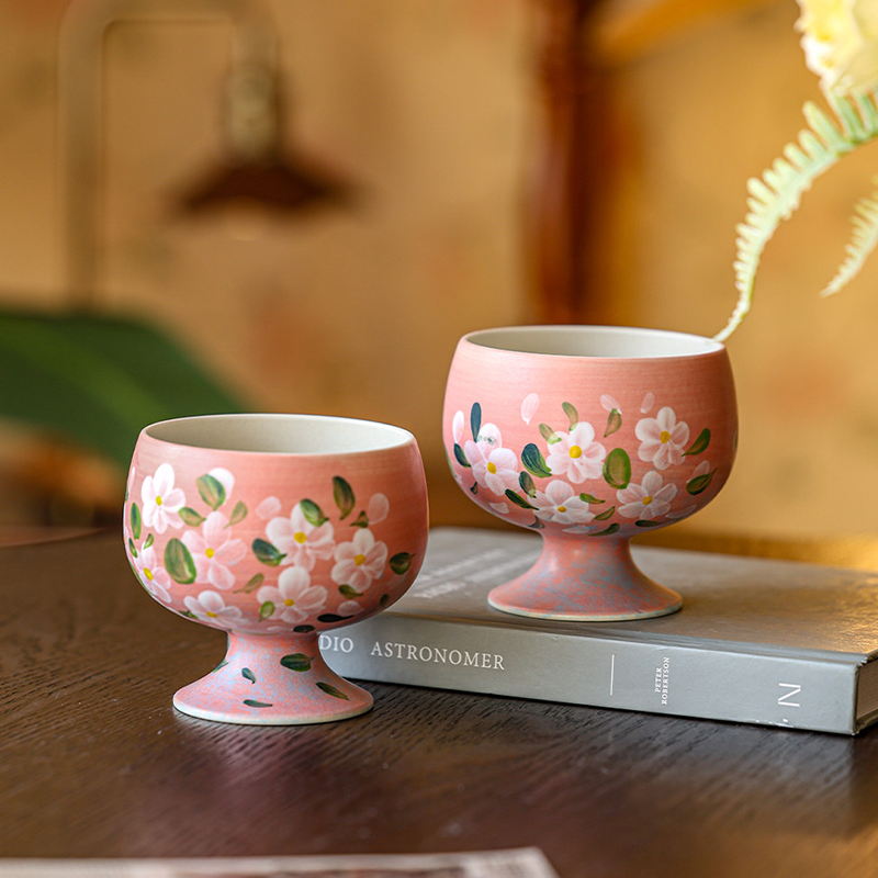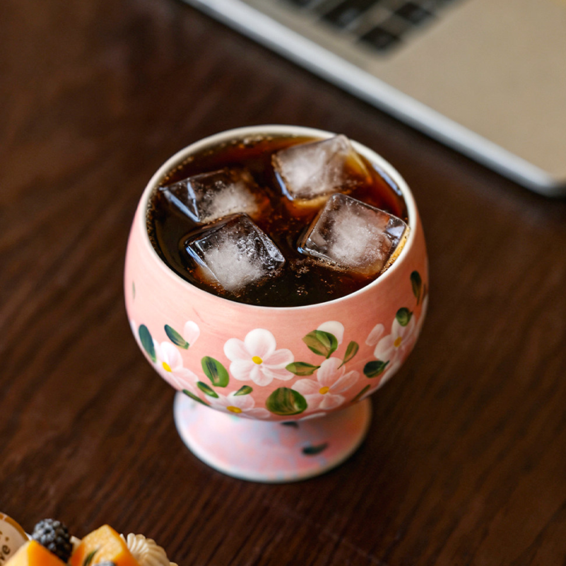 By artis Orion :A unique, elevated silhouette that brings a sense of ceremony to your morning juice or evening wine.Each petal is hand-painted with underglaze colors,the underglaze technique ensures the floral patterns never fade and feel incredibly smooth to the touch.