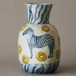 Hand-Painted “Horse & Coins” Rustic Ceramic Vase