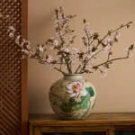 By artist Taomei:The ceramic base from Jingdezhen gives it an exceptionally solid texture. You can feel the craftsman’s intention in every hand – painted stroke—not the rigidity of machine printing, but like someone holding a brush, describing the flower’s posture and leaf veins stroke by stroke. Imagine placing it next to the coffee table in the living room: when the sun shines obliquely, the glaze will emit a soft light, and the shadow of the lotus falls on the wall, making the air poetic. Or put it on the sideboard in the dining room—when you glance at it during a meal, even your appetite becomes more elegant. Place it on the bedside table in the bedroom: take a look before sleeping, and the day’s fatigue is quietly soothed by this touch of lotus charm (even though it’s a painting, the atmosphere is fully loaded).