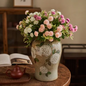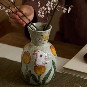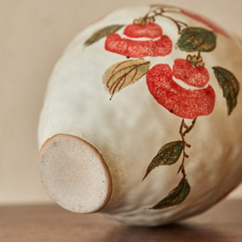 By artist Taomei:life is sweet, and that good luck is always in bloom.The shape is curvy and soft, with a narrow neck that keeps branches upright, and a wide belly that feels cozy in your hands. I wanted it to feel like a little treasure, something that holds not just flowers, but hope—like the way a persimmon holds the warmth of the sun. I wanted them to look plump and juicy, with little seeds peeking through, like they’re just picked from a tree in autumn. In the stories I grew up with, persimmons are a symbol of good things in succession—their round shape and sweet taste stand for abundance, happiness, and blessings that keep coming.