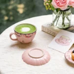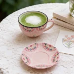 Soft pink base + hand-painted lace trim + daisy accents, handcrafted in Jingdezhen. 200ml capacity for coffee, matcha, or afternoon tea—cute and cozy, the perfect vibe for your desk!