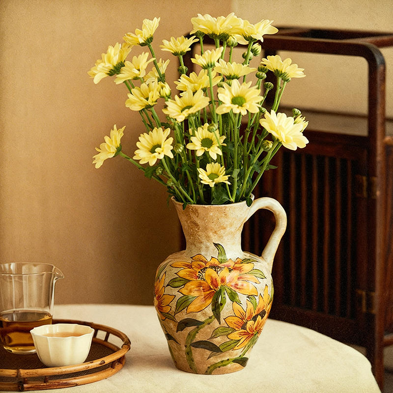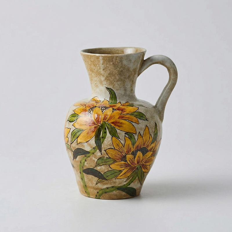 Hand-Painted Sunflower Single-Handle Ceramic Vase