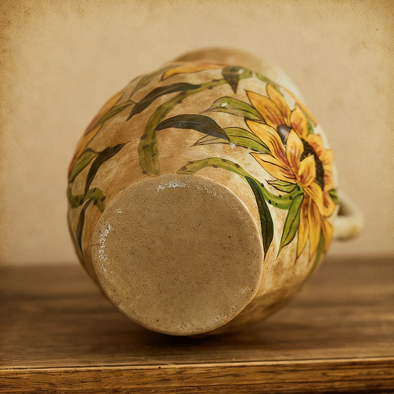 And those sunflowers? Every single petal is painted by hand. I didn’t use stencils or stamps—just a brush, some glaze, and a lot of patience. I wanted them to look like they’re still growing, reaching for the sun, a little messy and wild, just like real sunflowers. Some petals are brighter, some are a little darker, and that’s on purpose. No two flowers are the same, just like no two days are the same. That’s the magic of hand-painted work, right? Imperfect, but full of life.