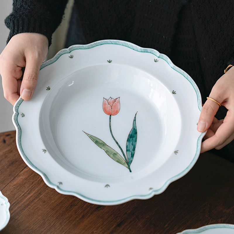 Hand-Painted Tulip Scalloped Ceramic Plate