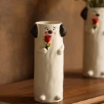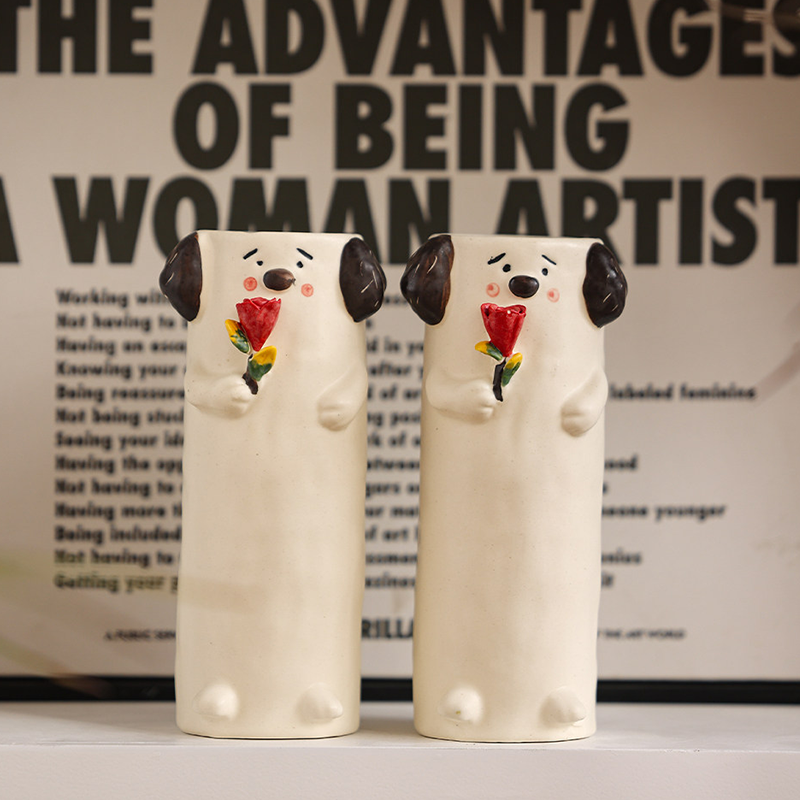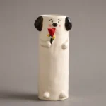 By artist Xiansheng: I designed this puppy to be a quiet messenger of warmth.I start by sketching the puppy’s soft eyes, floppy ears, and the tulip it gently holds onto a pre-fired porcelain body, stroke by stroke. Then I cover the entire piece with a clear glaze, and fire it at over 1300°C. The pigments fuse deeply into the glaze, creating a velvety matte finish that never fades or wears—locking this little moment of cuteness into the ceramic forever.I hope this puppy finds a home on your desk, windowsill, or nightstand—somewhere it can remind you to slow down.