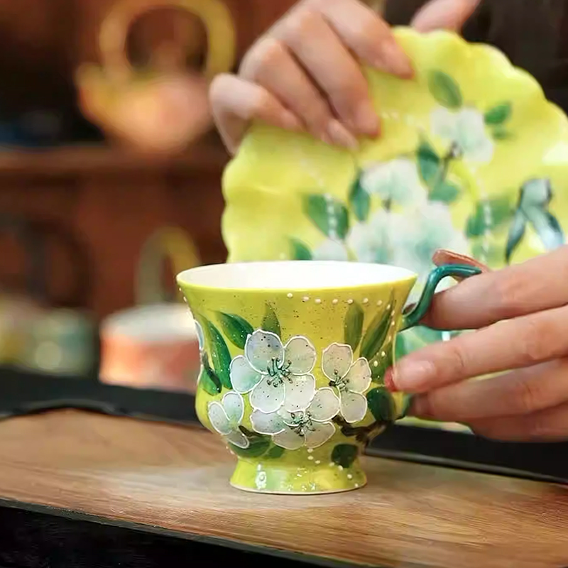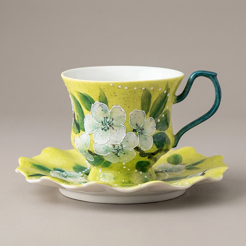 Impressionist Jasmine Hand-Painted High-Fire Underglaze Cup & Saucer Set