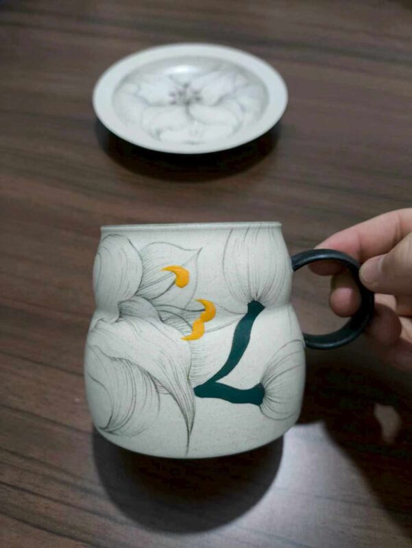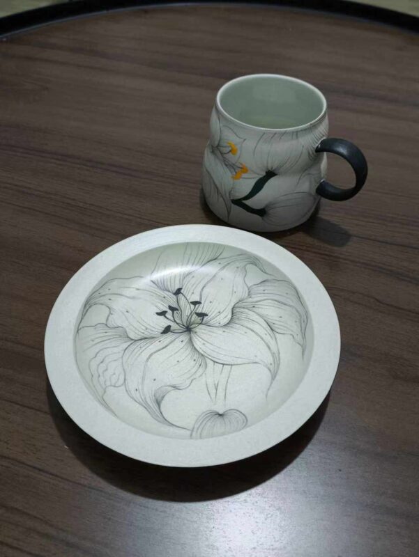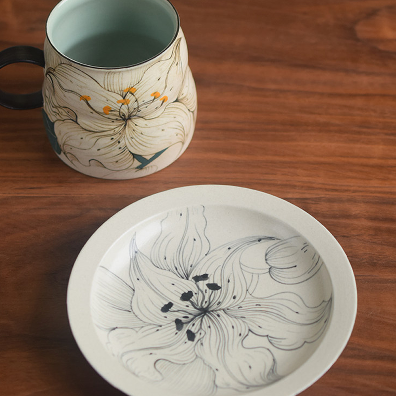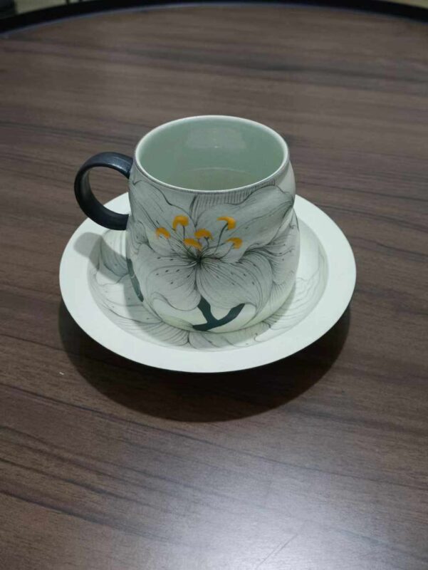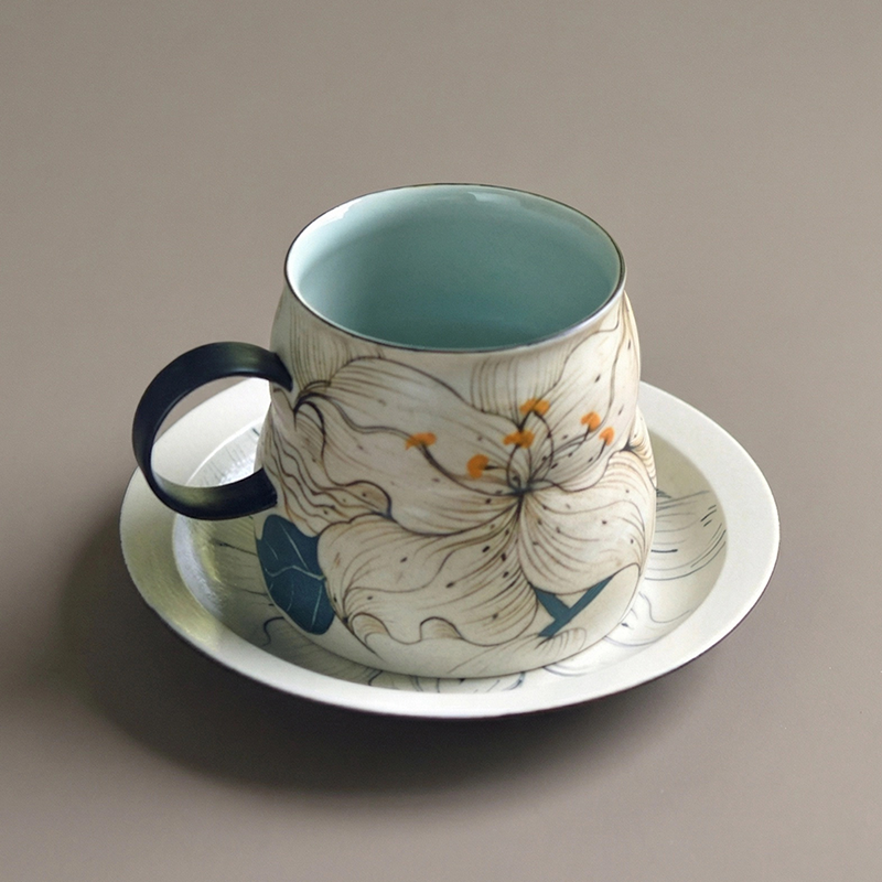Ink Lily Hand-Painted Underglaze Coffee Cup & Saucer Set