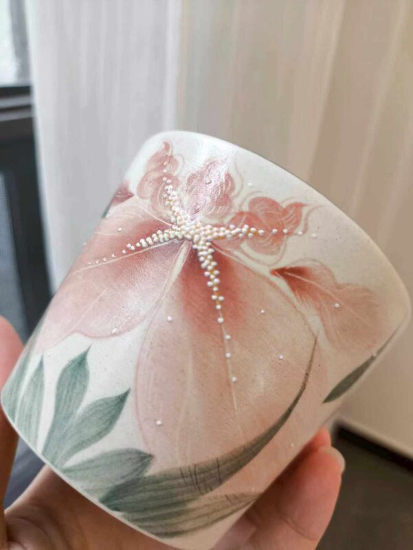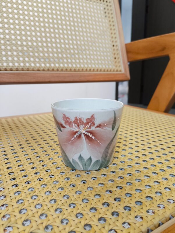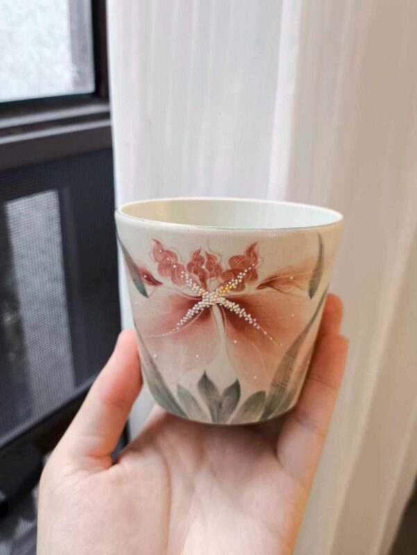 2 reviews for Pink Iris Hand-Painted Underglaze Pig Mouth Coffee Cup