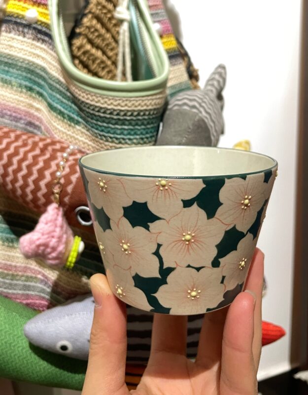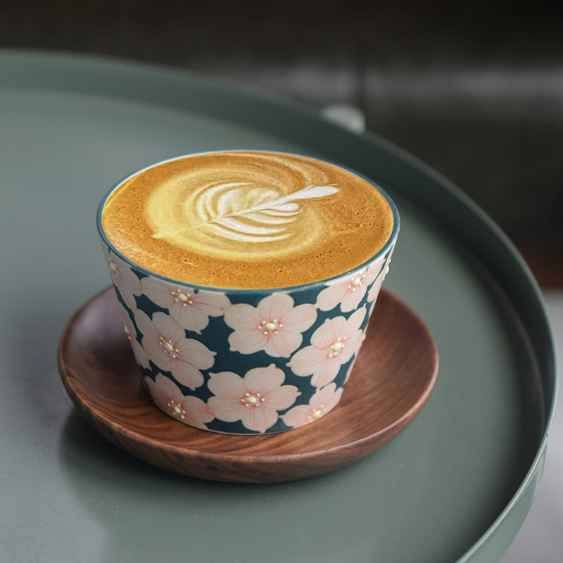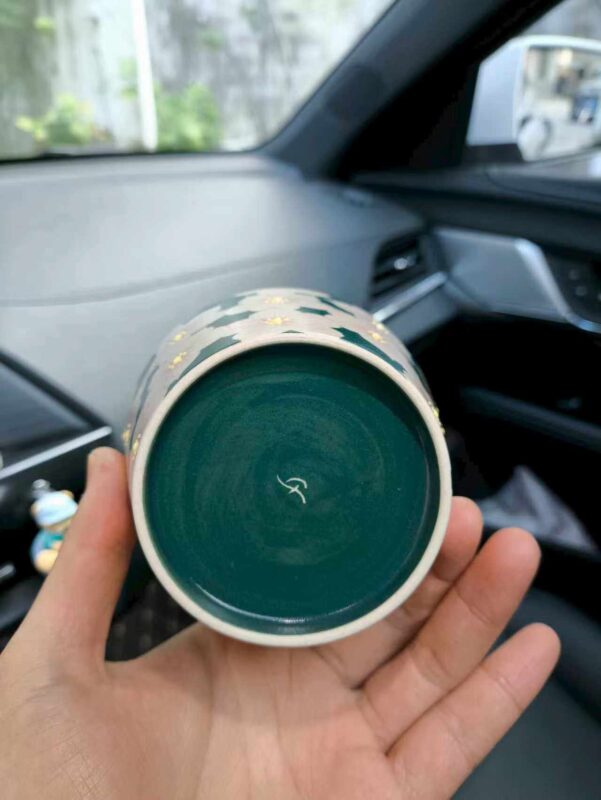 Crafted from fine clay by hand-throwing and fired at 1300℃, the deep teal base with a soft matte finish is like a spring night sky, warm and solid in hand. It won’t burn your hands or feel cold, making it perfect for warm coffee.