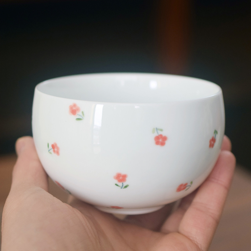 Warm high-white porcelain with hand-painted ditsy florals, 250ml capacity ideal for American coffee and lattes—original handcrafted ware full of fresh spring healing vibes.