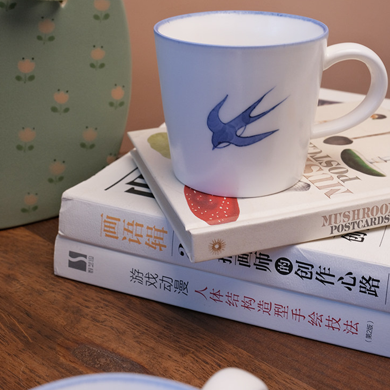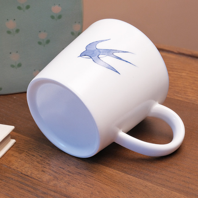 Off-white stoneware base with hand-painted indigo spring swallow. 220ml delicate capacity perfect for coffee and tea, easy-to-clean smooth glaze, blending handcrafted warmth with spring vibe—ideal for daily use and gifting.
