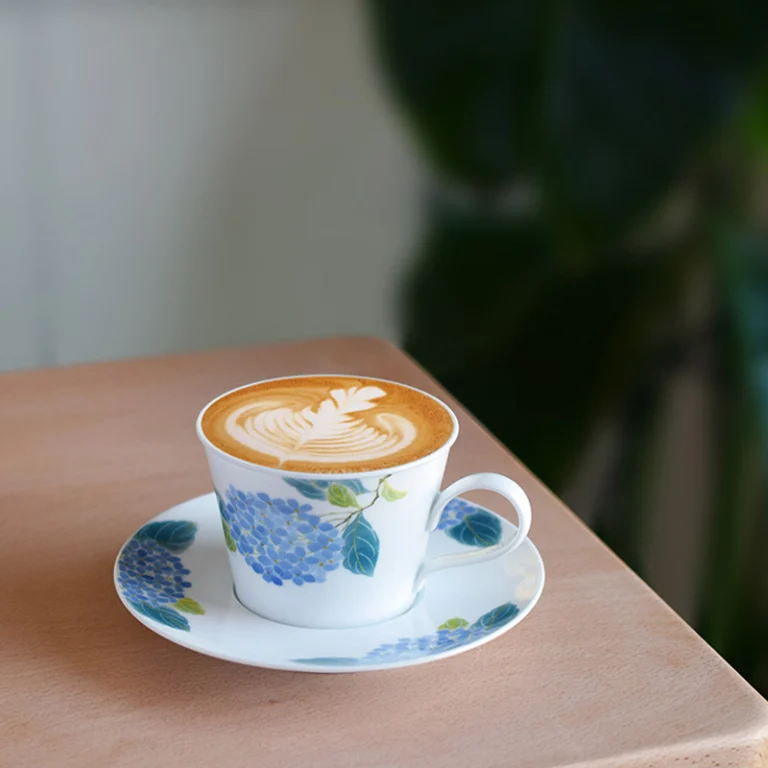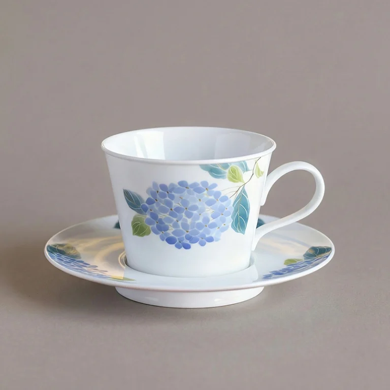 Blue Hydrangea Hand-Painted Underglaze Coffee Cup & Saucer Set