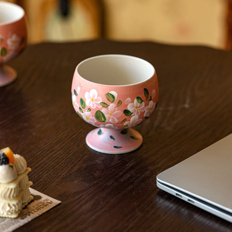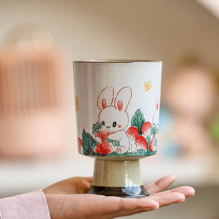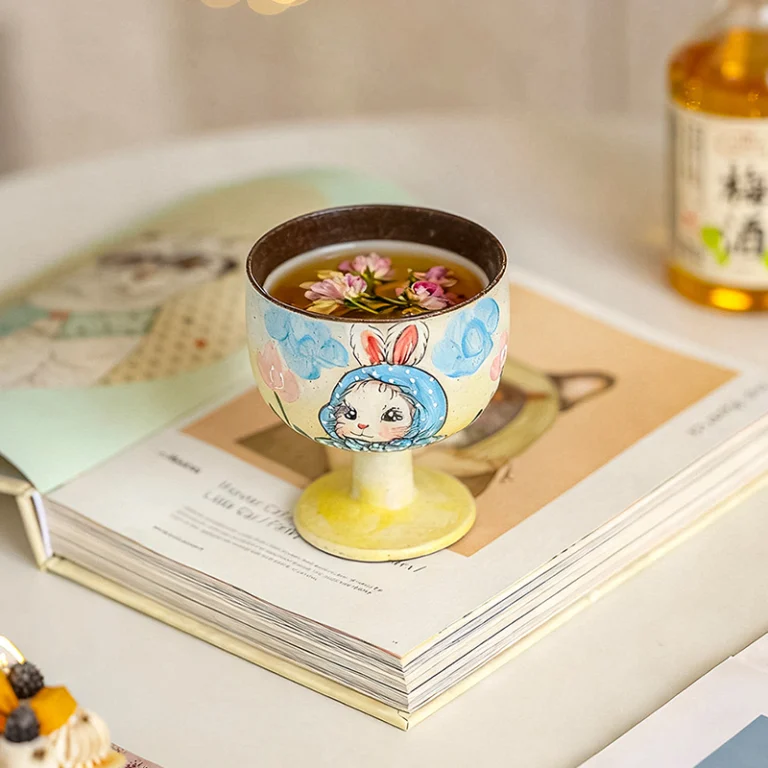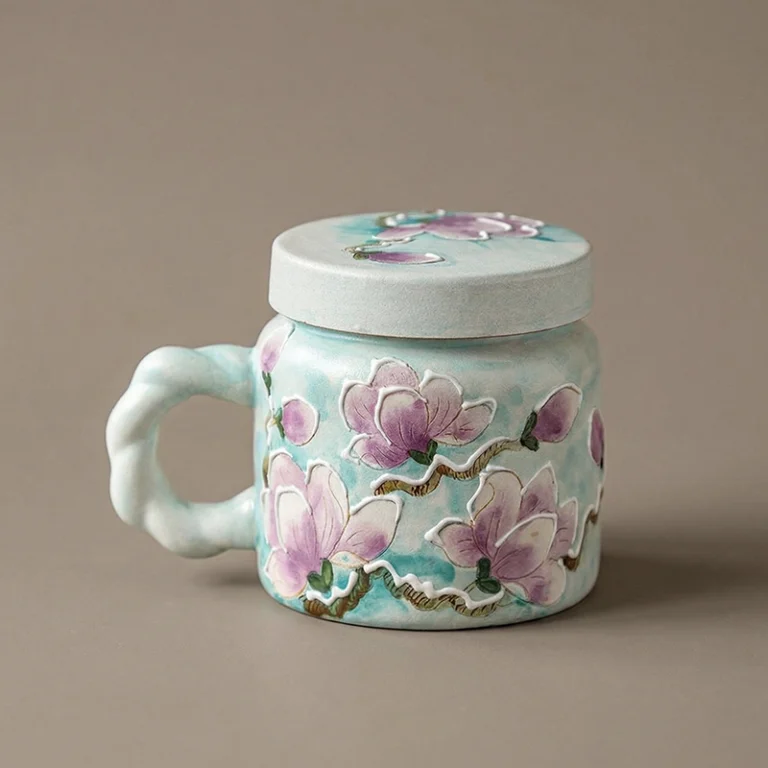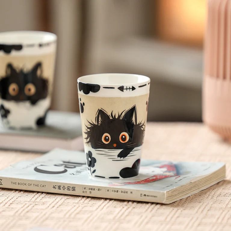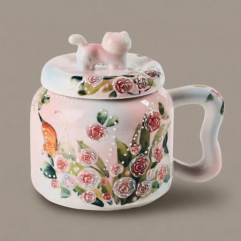Hand-Painted Rose Garden Cat Lid Straw Mug