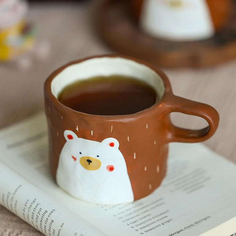 Hand-Pinched & Hand-Painted Rainy Polar Bear Mug