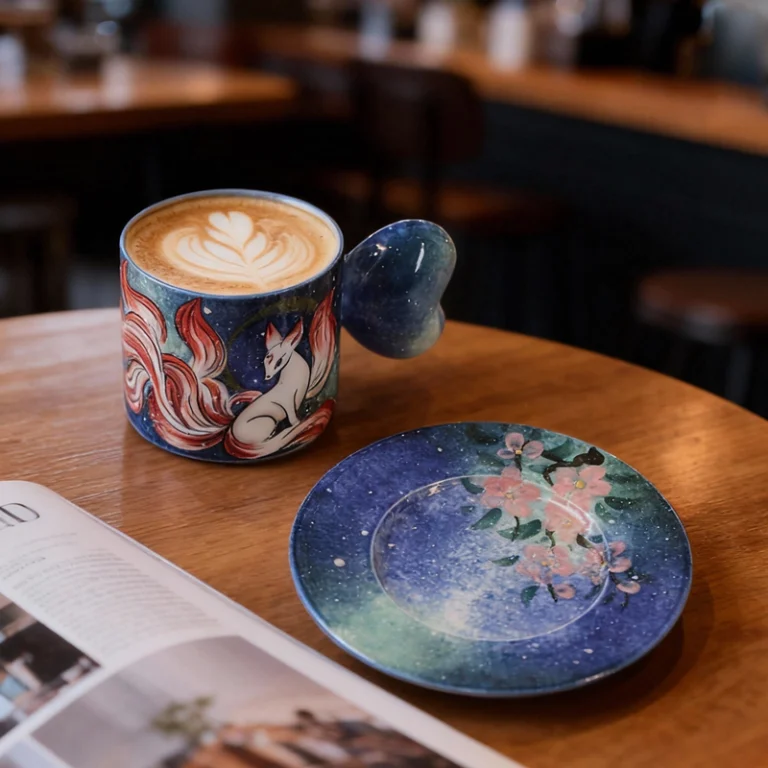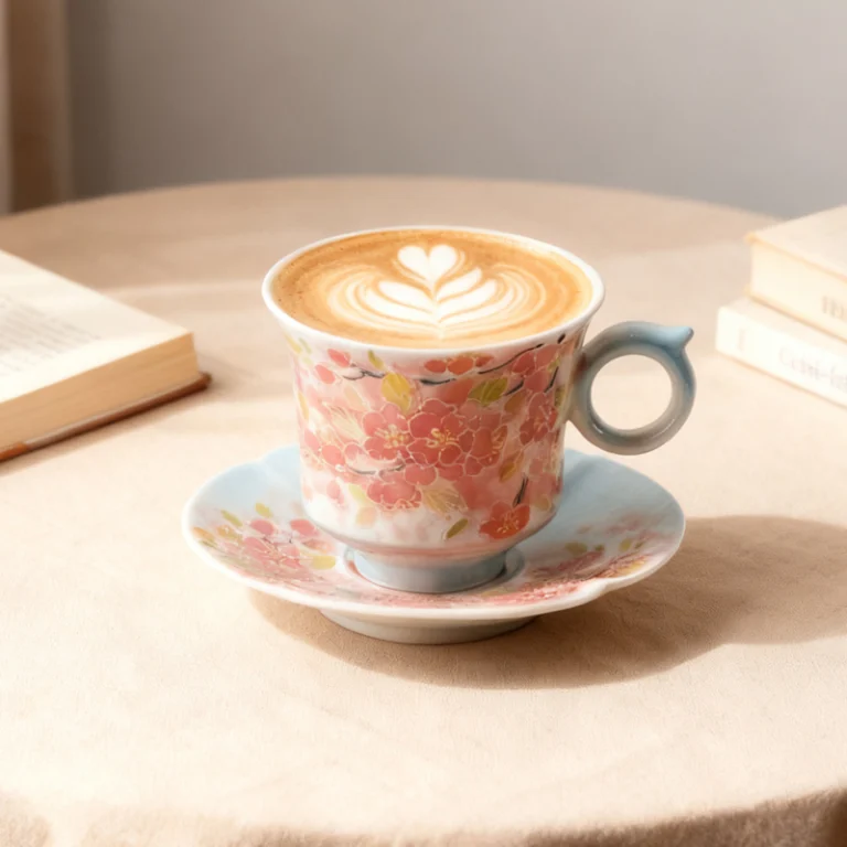 Hand-Painted Peach Blossom Cup & Saucer Set