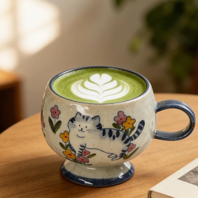 Tabby in the Flowers Hand-Painted Pedestal Mug