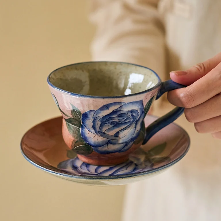 Blush Blue Rose Hand-Painted Cup & Saucer Set