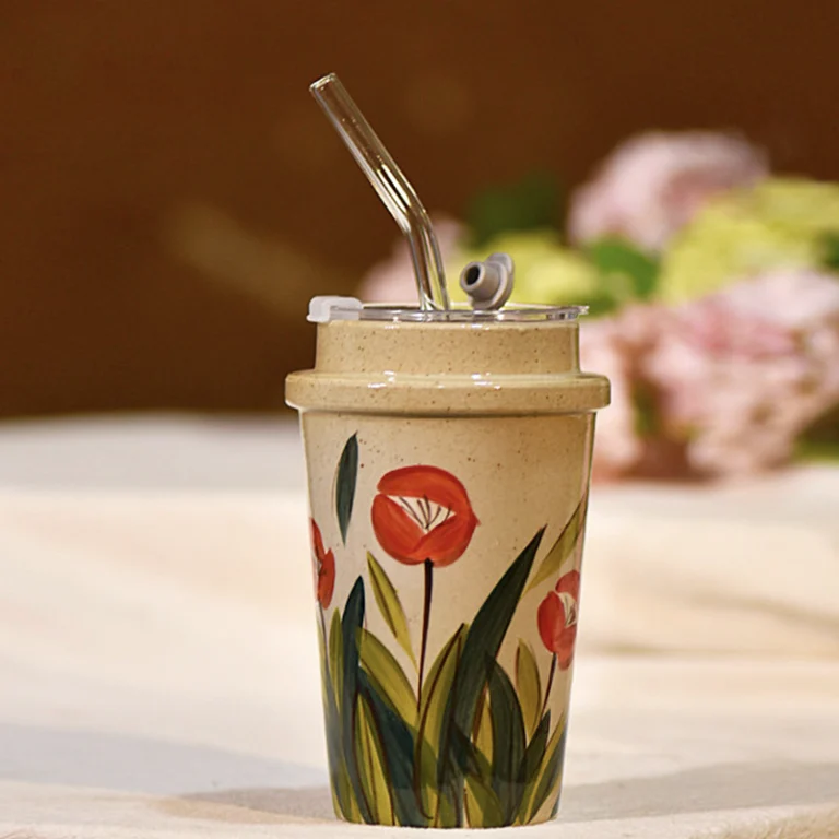 Blaze Tulip Hand-Painted umbler with Straw