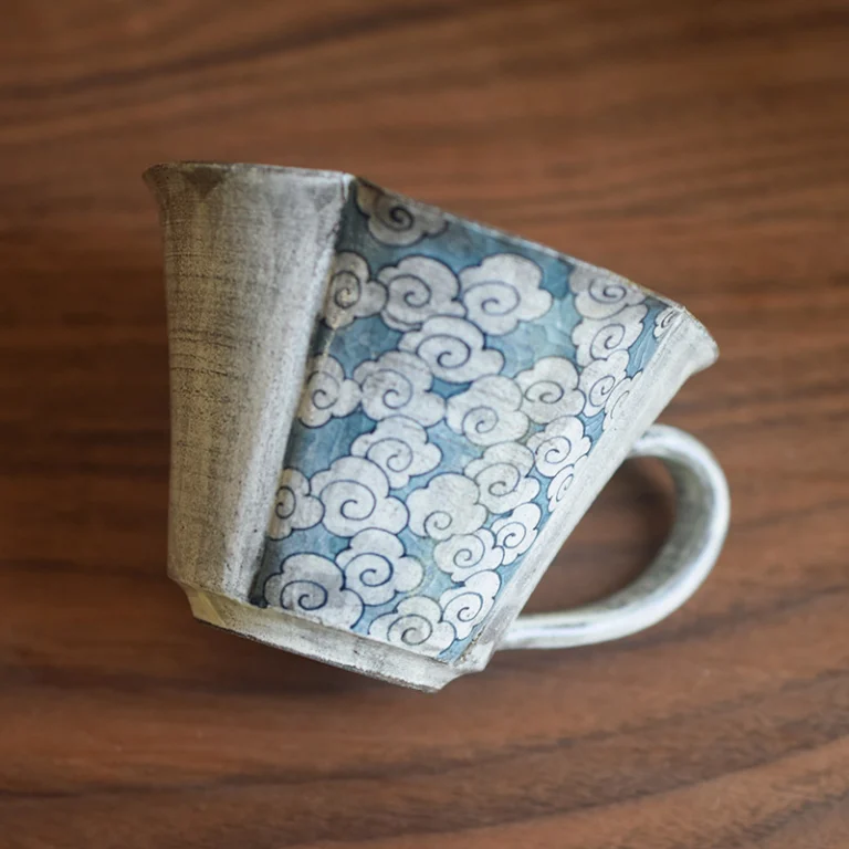 Blue-Gray Ginkgo Scalloped Hand-Painted Coffee Cup