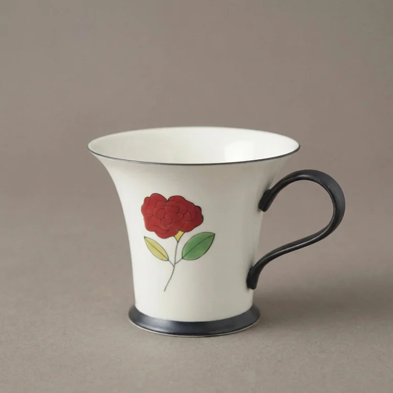 Vintage Red Rose Hand-Painted Underglaze Coffee Cup